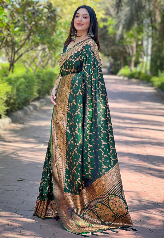 A regal symphony of silk and zari, where heritage weaves elegance into every thread